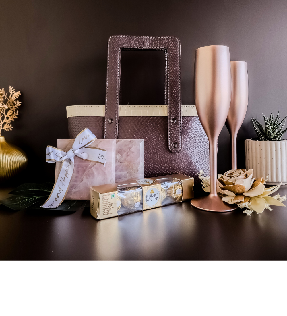 "I wanted something personalized yet luxurious for my bridesmaids and these guys delivered beyond expectations! Each gemstone accessory was handpicked to match their personalities. from the photo frames to the customized wine glasses everything was just on point, The unboxing experience was so delightful, my girls still talk about it. Thank you for making them feel special!"
