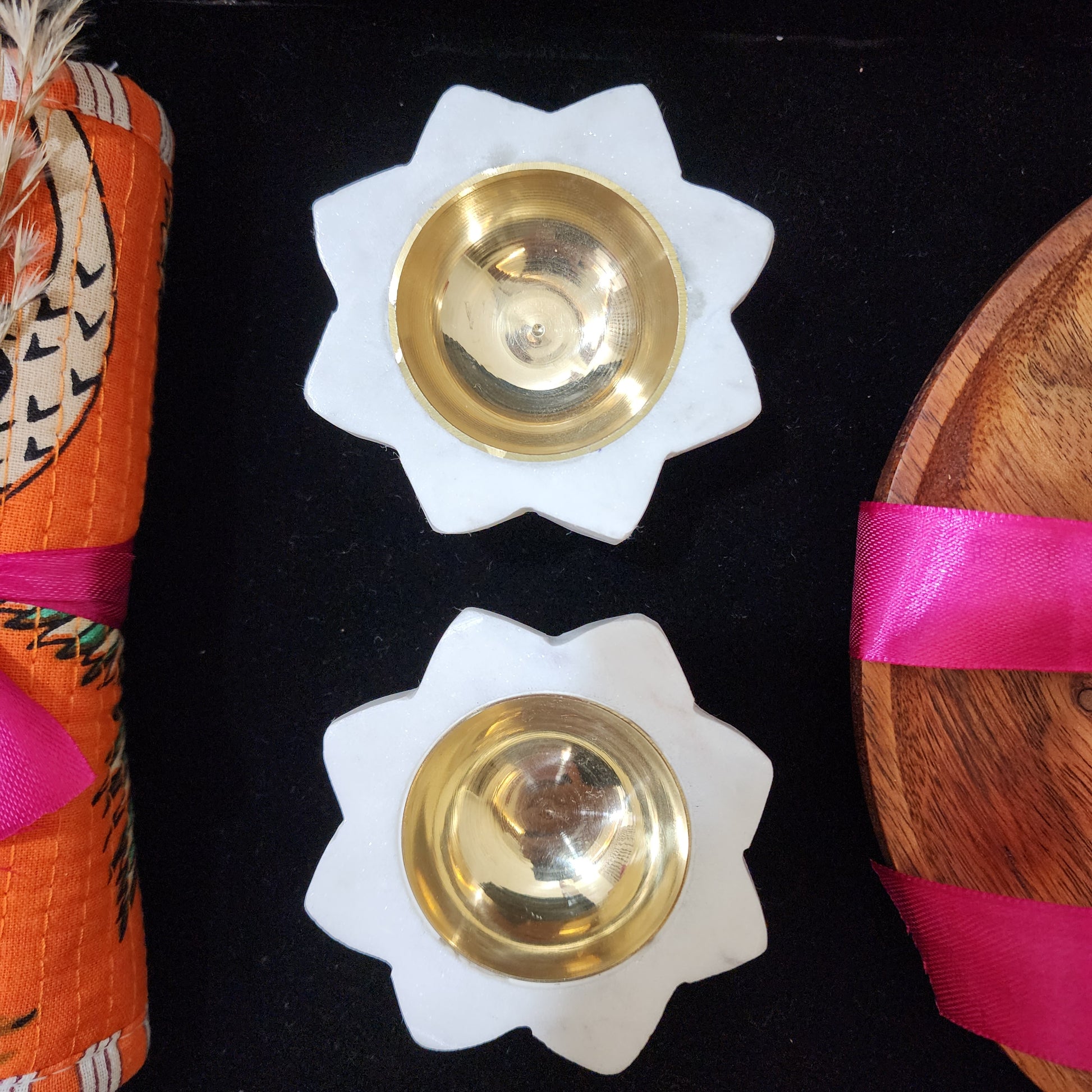 - A set of 2 marble & brass candle (2.5")