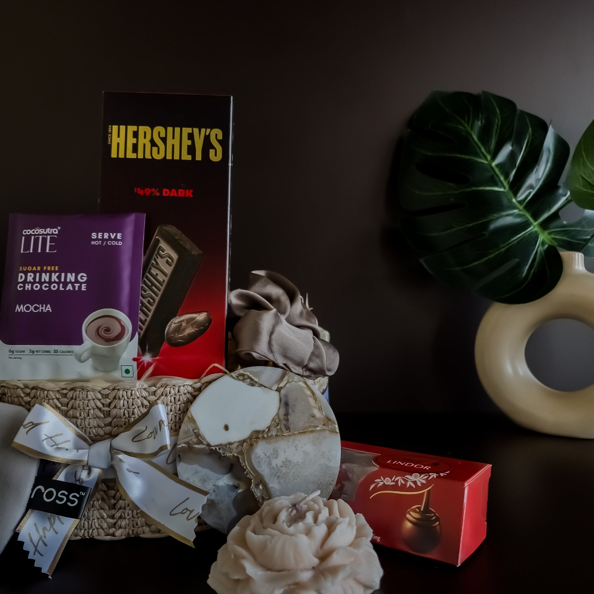 A Thoughtful And Luxurious Gift To Show Appreciation To Your Bridesmaids, This Carefully Curated Box Is Designed To Pamper And Indulge. Combining Rich Chocolates, Skincare Essentials, And Elegant Accessories, This Hamper Offers A Perfect Mix Of Comfort And Style, Making It An Unforgettable Thank-You Gift.