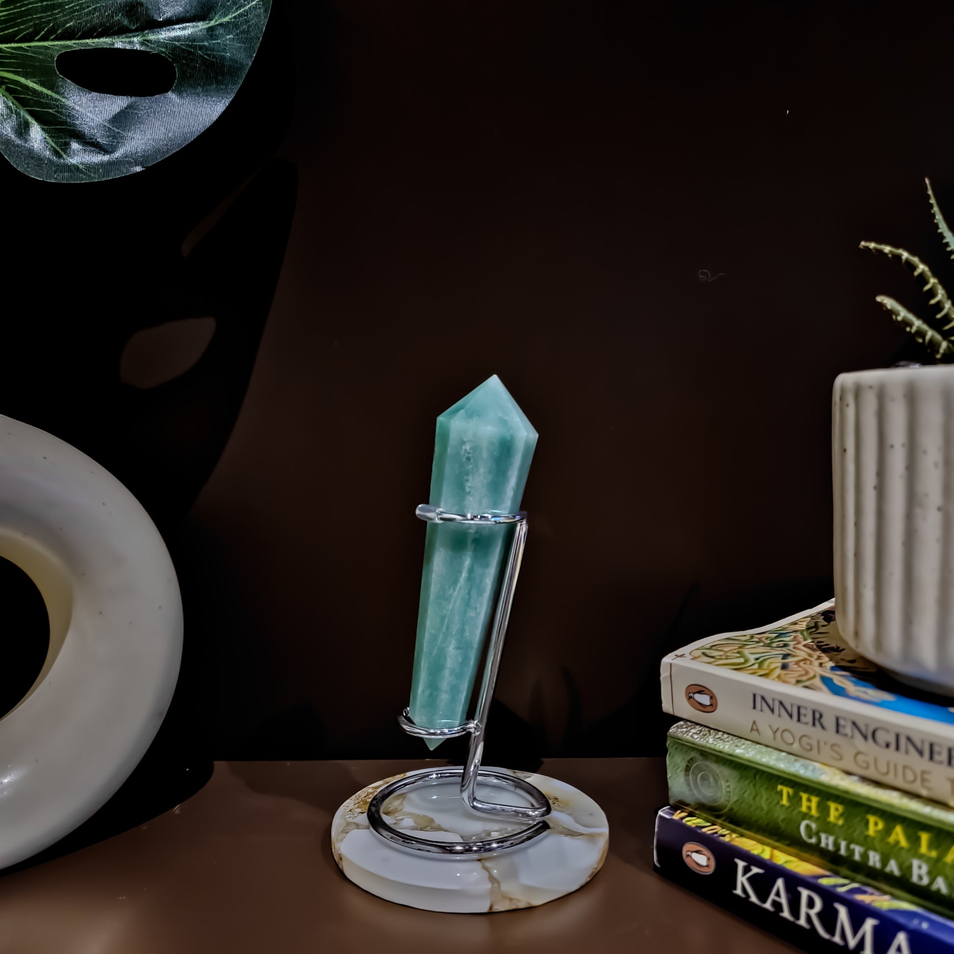 Bring Prosperity And Positive Energy Into Your Life With The Green Aventurine Healing Wand, Displayed In A Stainless Steel Stand. Known As The Stone Of Luck And Growth, Green Aventurine Is Believed To Attract Prosperity, Enhance Creativity, And Bring Emotional Balance.
