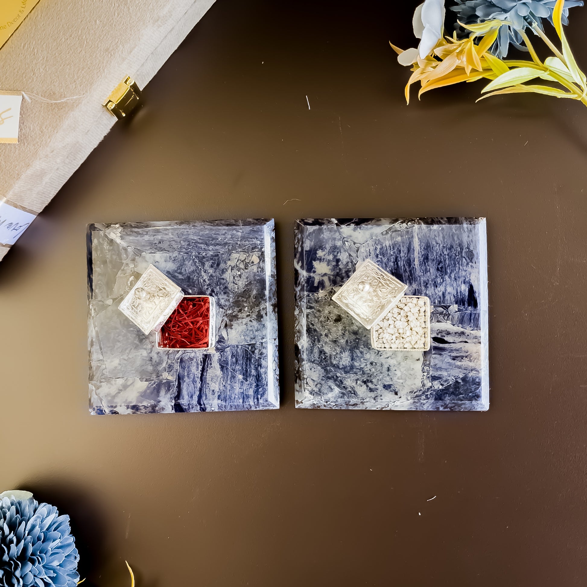 Indulge in the art of luxurious gifting with our Kesar Elaichi Luxe Set, a refined ensemble designed to impress. This set features two exquisite gemstone coasters handcrafted to perfection, accompanied by two silver-plated intricately worked square dibbis. One dibbi is filled with premium-grade kesar (saffron), renowned for its purity and fragrance, while the other is filled with shimmering silver pearls. Perfect for weddings, festive occasions, or special milestones, this set beautifully blends elegance, wellness, and traditional charm.