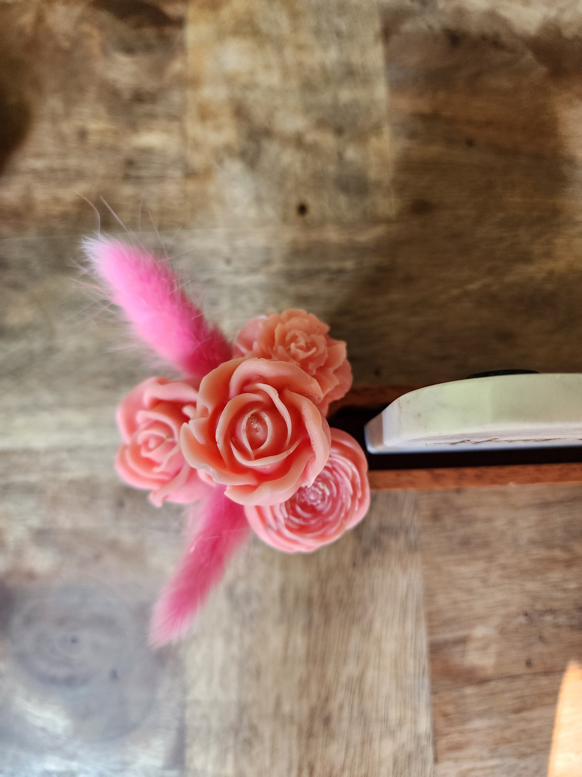 A bespoke gifting experience featuring a personalised name initial engraved on a marble plate, supported by a wooden stand that doubles as a card holder for desks & shelves; finished with a luxury fragranced candle bouquet that lasts for months, this custom gift delivers emotional value, personalisation & timeless décor-perfect for birthdays, milestones, weddings & premium corporate gifting.